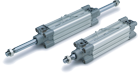 Cilindro según normas ISO/estándar: doble efecto, vástago simple/doble con amortiguación neumática en ambos extremos y amortiguación elástica.